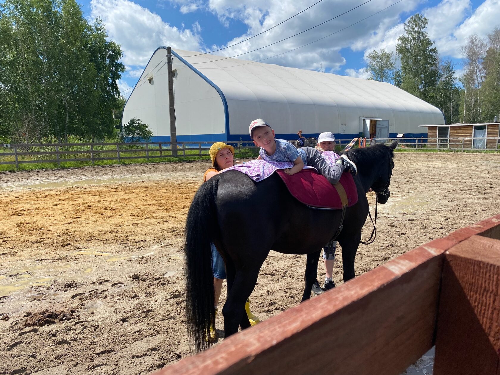 Благодаря замечательной организации «Солнечный день», общественная организация Дёма на протяжении нескольких месяцев занимается иппотерапией, 2 раза в неделю. Раньше, когда у нас не получалось заниматься регулярно, Демид всегда отвыкал от лошади за время перерыва и потом долгое время трусил. Сейчас он с нетерпением ждёт занятий и кроме физической пользы получает много положительных эмоций!!!